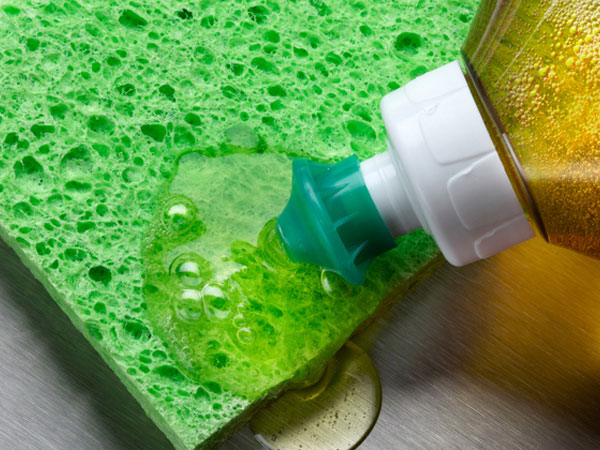 ใช้น้ำย าล้างจานนำมาหยดบนรอยเปื้อนซ้ำอีก 2-3 หยด แล้วค่อยๆใช้นิ้วมือค่อยถูไปยังบริเวณคราบต่างๆเบาๆ