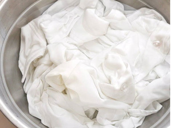 มะนาวนั้นจัดได้ว่าเป็นส ารฟอกขาวที่ดีมาก ด้วยฤทธิ์ของกรดในมะนาวนั่นเอง วิธีใช้น้ำมะนาวก็ง่ายๆ เพียงเพิ่มน้ำมะนาวลงไป 1 ถ้วยในขั้นตอนการซัก ใส่ไปพร้อมผงซักฟอกเลย แล้วก็เริ่มการซักตามปกติ เพียงเท่านี้เราก็จะได้ผ้าที่ขาวเหมือนใหม่ และยังมีกลิ่นหอมของมะนาวอีกด้วย